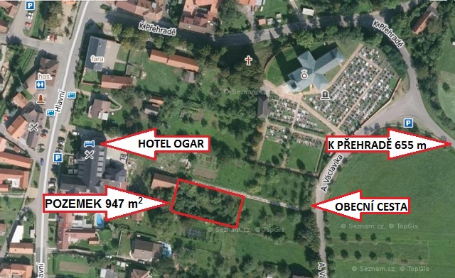 Dobře přístupný pozemek k zastavění 947 m², s pěkným výhledem